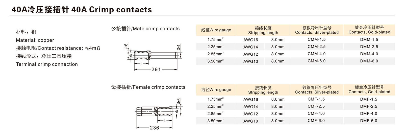 40A冷压接插针