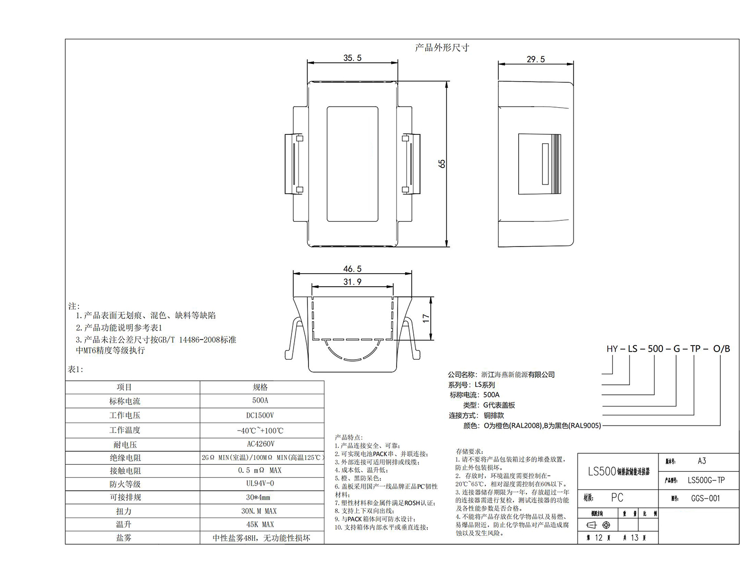 储能专用连接器